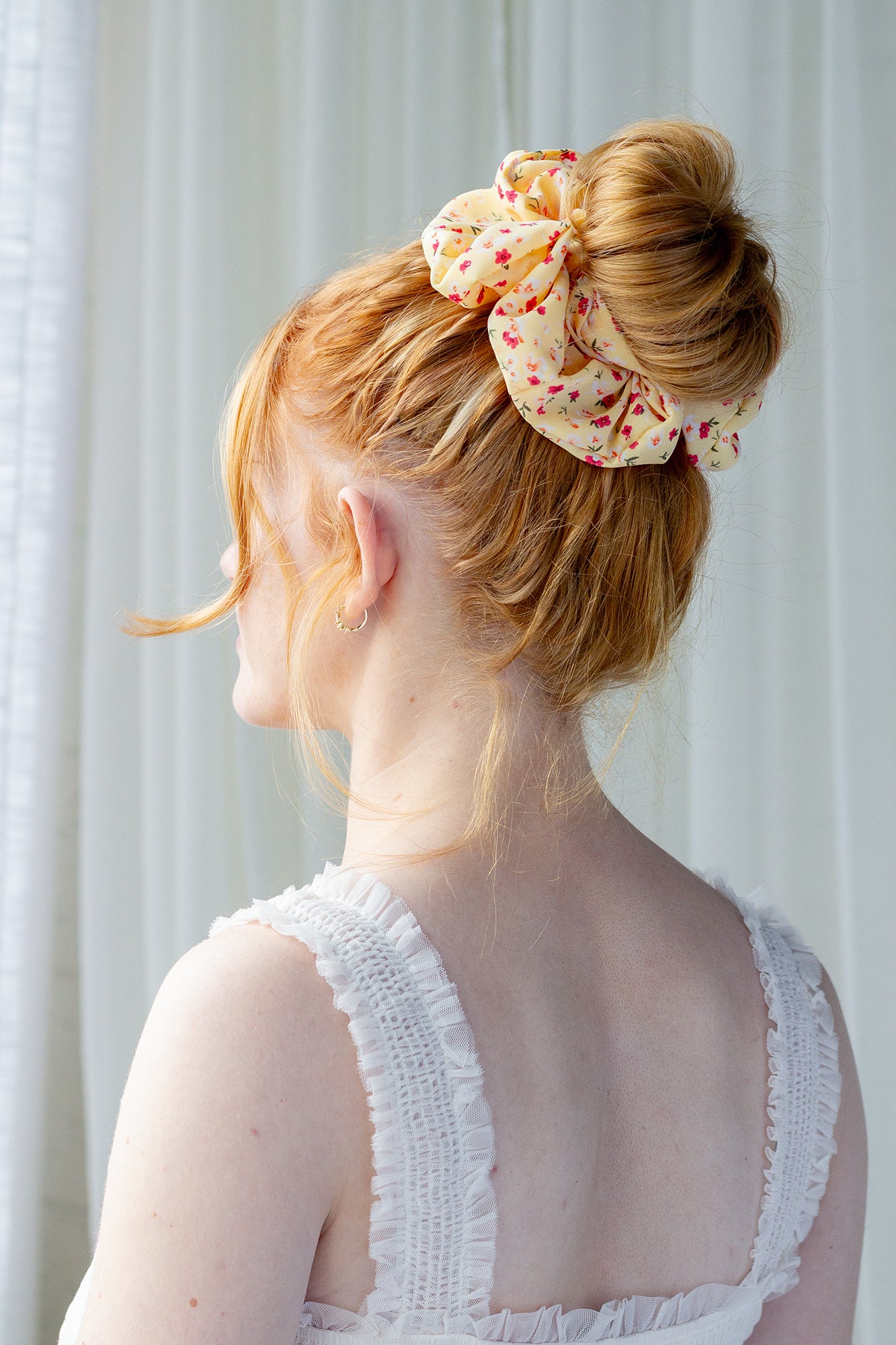 Introducing Willow, the perfect accessory for the season. This floral scrunchie is not only pretty, but also adds a luxurious pop of spring to any outfit. Elevate your style with this elegant and exclusive piece. Limited edition.